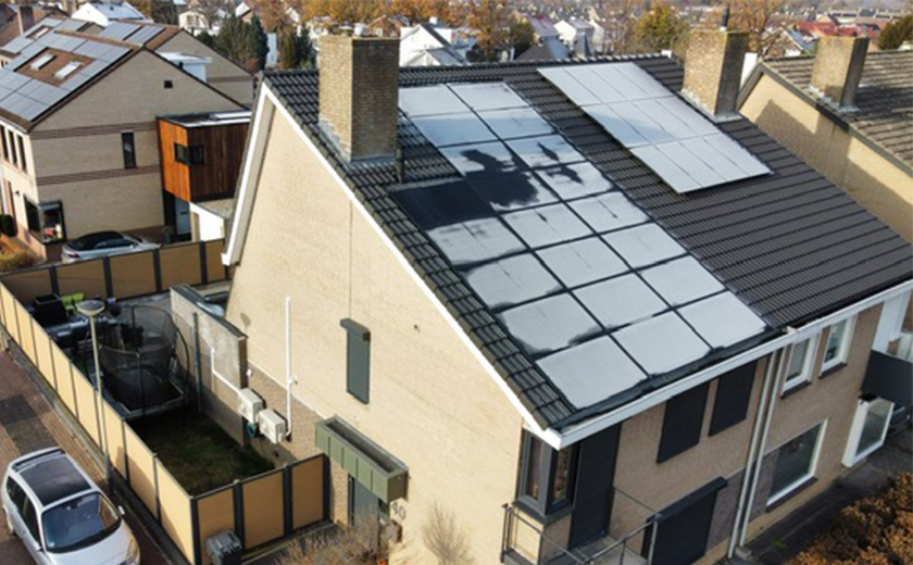 In plaats van de dakpannen heeft Innovi Dak een volledig indaksysteem van zonnepanelen geplaatst. Totaal zijn er 21 zonnepanelen geïnstalleerd.